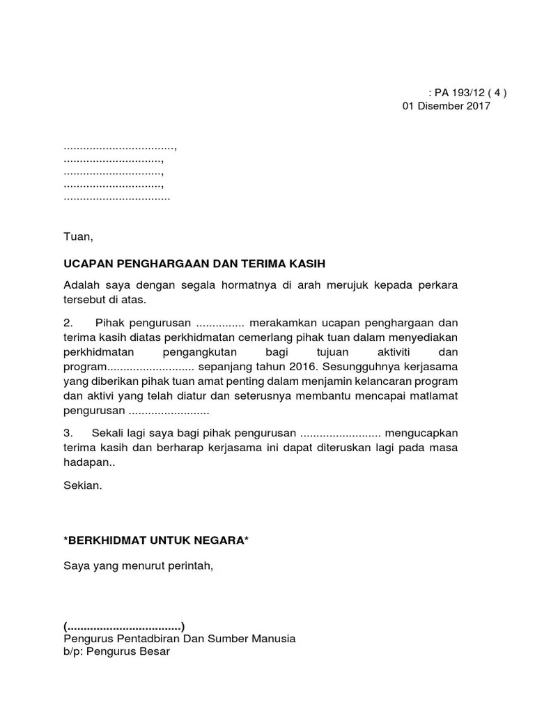 Contoh Surat Penghargaan Dan Terima Kasih Atas Perkhidmatan / Contoh Surat Penghargaan Dan Terima Kasih Atas Perkhidmatan Weeepsa